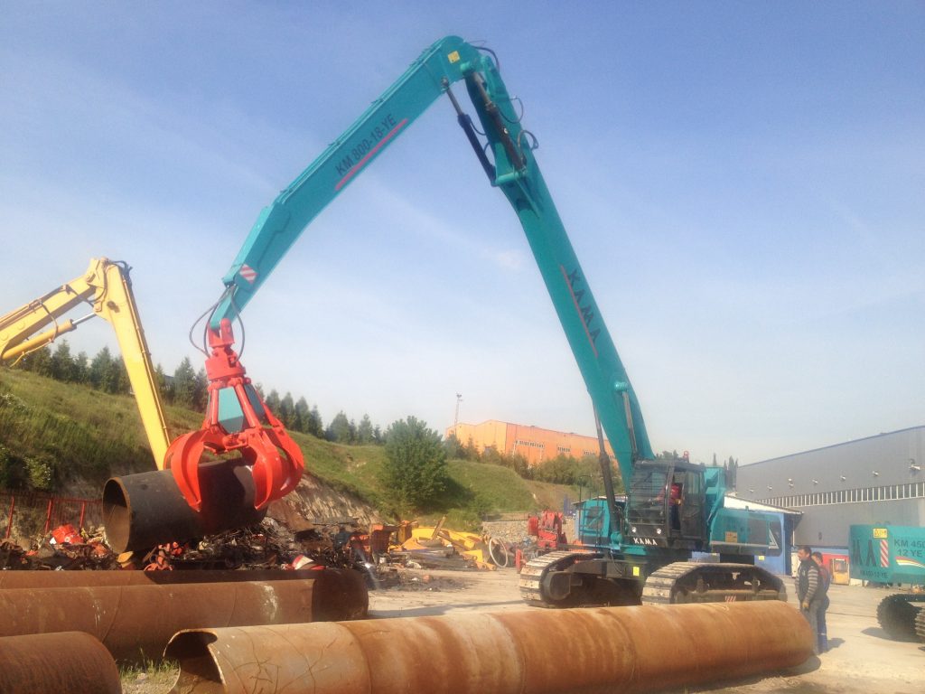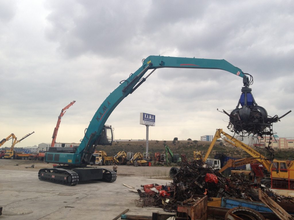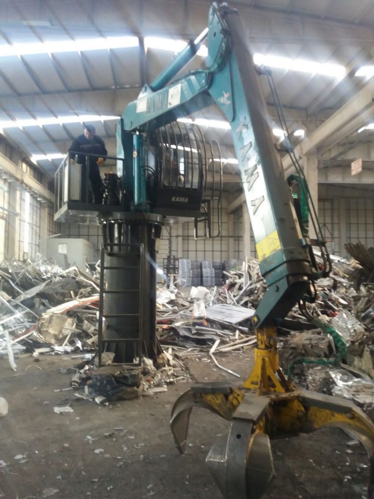 Geri dönüşüm sektöründe her türlü hurda malzeme yükleme, taşıma ve atık yönetimi için kompakt ve seri hurda vinci Alçak tavanlı kapalı alanlar için teleskop bomlu rahat çalışır kırma bom tipi…